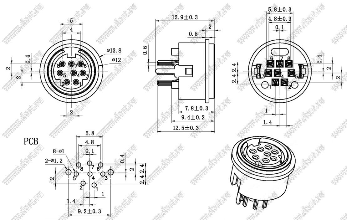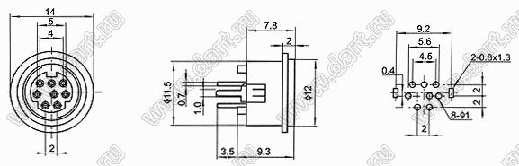 Каталог > Электронные компоненты, радиодетали > Разъёмы (соединители, переходники) > Разъемы DIN (мини) > Розетки мини-DIN на плату > MDC-8-04