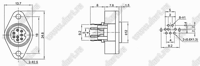 Каталог > Электронные компоненты, радиодетали > Разъёмы (соединители, переходники) > Разъемы DIN (мини) > Розетки мини-DIN на плату > MDC-8-09A