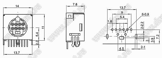 Каталог > Электронные компоненты, радиодетали > Разъёмы (соединители, переходники) > Разъемы DIN (мини) > Розетки мини-DIN на плату > MDC-8-43
