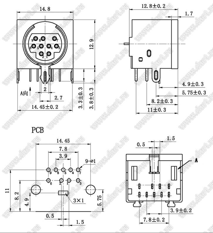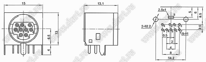 Каталог > Электронные компоненты, радиодетали > Разъёмы (соединители, переходники) > Разъемы DIN (мини) > Розетки мини-DIN на плату > MDC-9-02