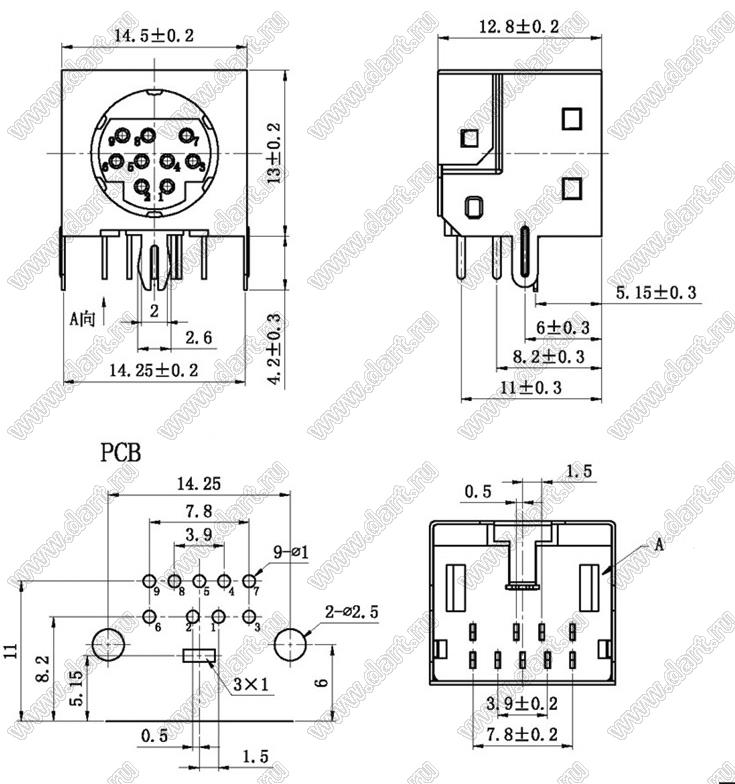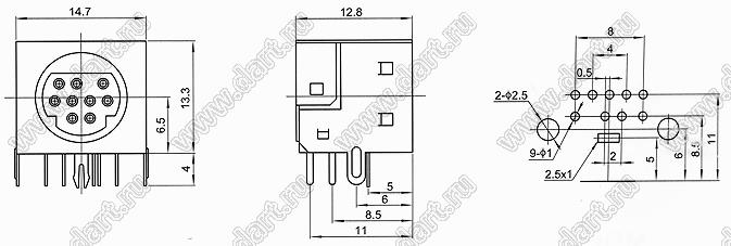Каталог > Электронные компоненты, радиодетали > Разъёмы (соединители, переходники) > Разъемы DIN (мини) > Розетки мини-DIN на плату > MDC-9-03