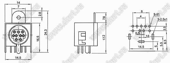Каталог > Электронные компоненты, радиодетали > Разъёмы (соединители, переходники) > Разъемы DIN (мини) > Розетки мини-DIN на плату > MDC-9-17