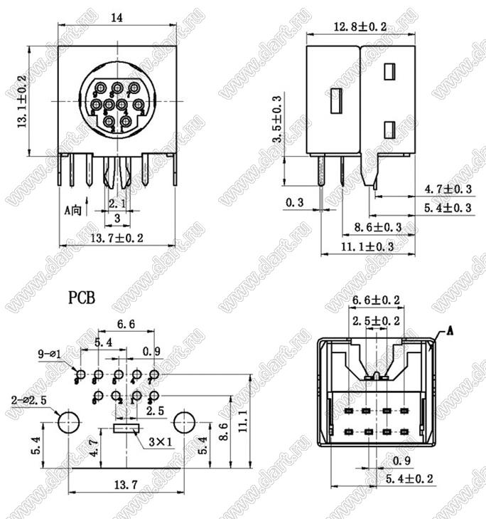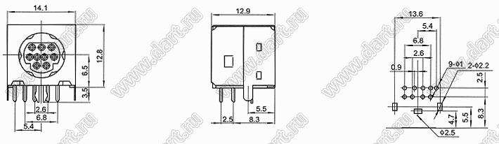 Каталог > Электронные компоненты, радиодетали > Разъёмы (соединители, переходники) > Разъемы DIN (мини) > Розетки мини-DIN на плату > MDC-9-19