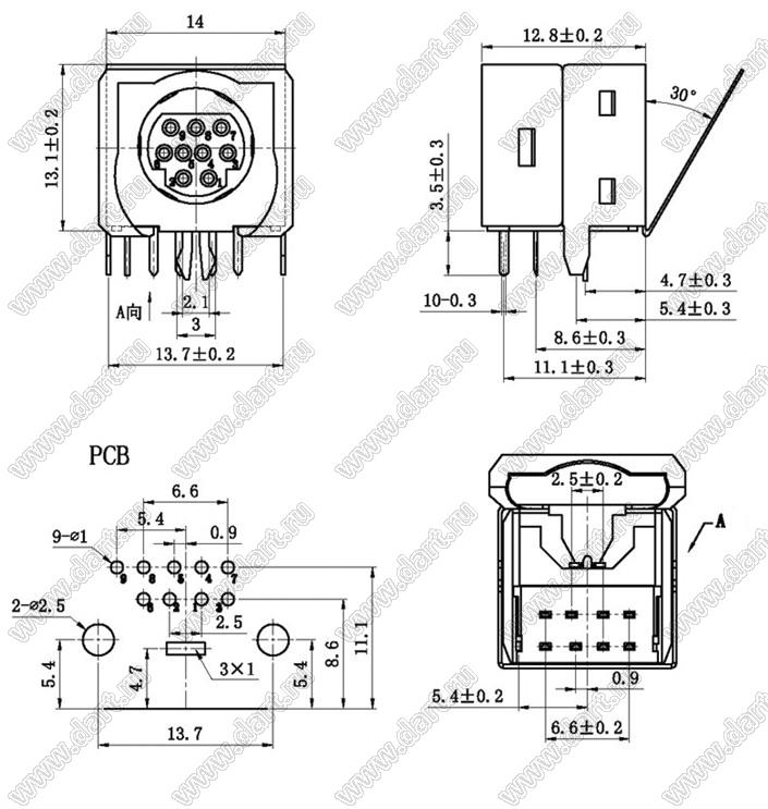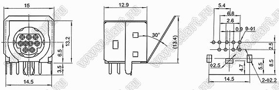 Каталог > Электронные компоненты, радиодетали > Разъёмы (соединители, переходники) > Разъемы DIN (мини) > Розетки мини-DIN на плату > MDC-9-19A