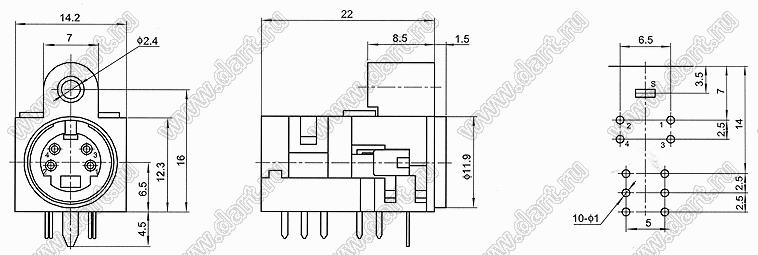 Каталог > Электронные компоненты, радиодетали > Разъёмы (соединители, переходники) > Разъемы DIN (мини) > Розетки мини-DIN на плату > MDCK-4-05