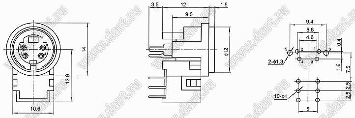 Каталог > Электронные компоненты, радиодетали > Разъёмы (соединители, переходники) > Разъемы DIN (мини) > Розетки мини-DIN на плату > MDCK-4-10