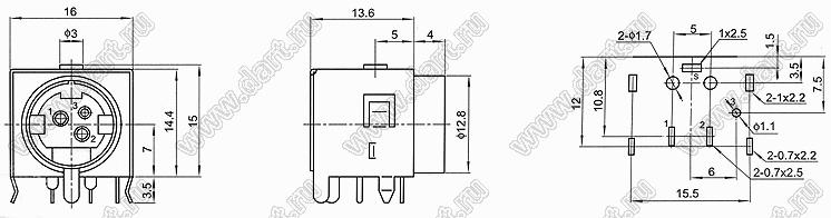 Каталог > Электронные компоненты, радиодетали > Разъёмы (соединители, переходники) > Разъемы DIN (мини) > Силовые мини-DIN > MPC-3-03-F
