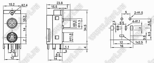 Каталог > Электронные компоненты, радиодетали > Разъёмы (соединители, переходники) > Разъемы DIN (мини) > Блоки гнезд RCA и мини-DIN > AV-MDC-406