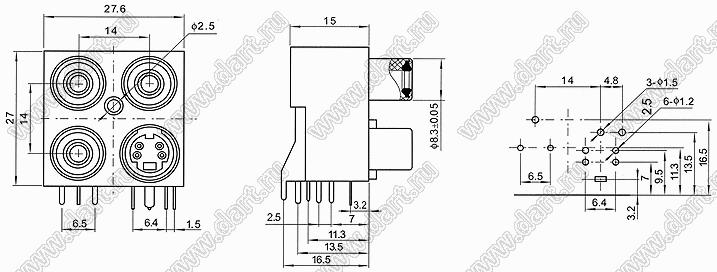 Каталог > Электронные компоненты, радиодетали > Разъёмы (соединители, переходники) > Разъемы DIN (мини) > Блоки гнезд RCA и мини-DIN > AV-MDC-423