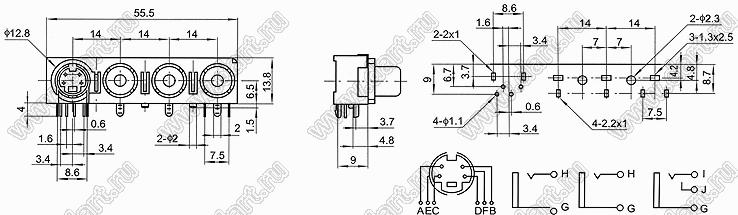 Каталог > Электронные компоненты, радиодетали > Разъёмы (соединители, переходники) > Разъемы DIN (мини) > Блоки гнезд RCA и мини-DIN > AV-MDC-426