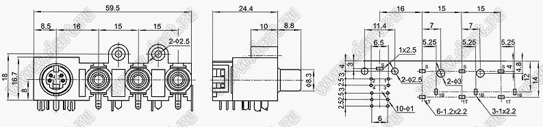 Каталог > Электронные компоненты, радиодетали > Разъёмы (соединители, переходники) > Разъемы DIN (мини) > Блоки гнезд RCA и мини-DIN > AV-MDCK-422