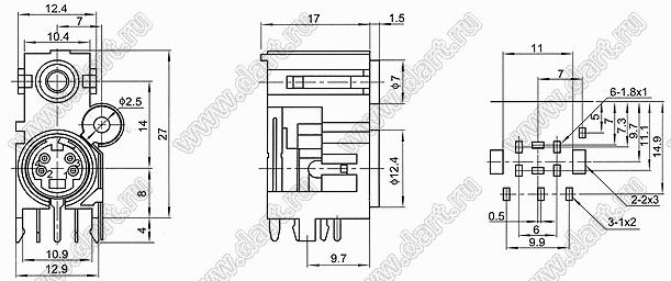 Каталог > Электронные компоненты, радиодетали > Разъёмы (соединители, переходники) > Разъемы DIN (мини) > Блоки гнезд RCA и мини-DIN > 3.5-MDC-430