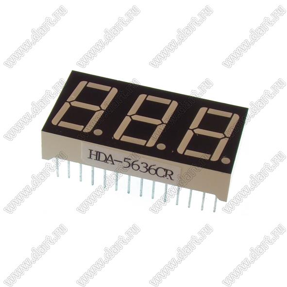 DDA-5636CR матрица светодиодная 3x7сегментов, 0,56", общий анод, цвет излучения красный; 0,56"; 3-разр.; 7-сегм.; красный   DDA-5636CR