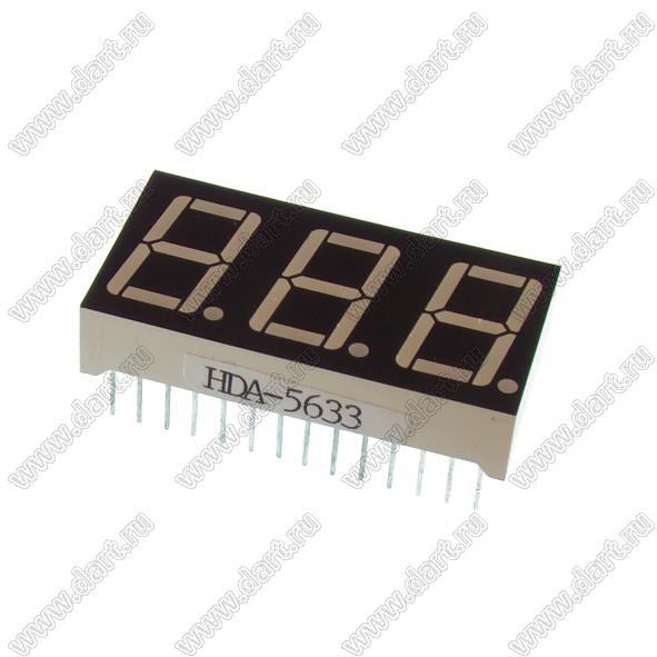 DDA-5633 матрица светодиодная 3x7сегментов, 0,56", общий анод, цвет излучения желто-зеленый; 0,56"; 3-разр.; 7-сегм.; красный   DDA-5633