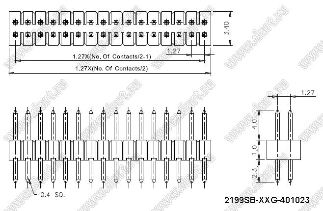 Каталог > Электронные компоненты, радиодетали > Разъёмы (соединители, переходники) > Разъемы плата-плата (межплатные) > шаг 1,27x1,27 мм (разъемы межплатные штыревые и гнезда для них) > двухрядные > 2199SB-XXXG (PLLD1.27) серия > 2199SB-100G-401023 (PLLD1.27-100)