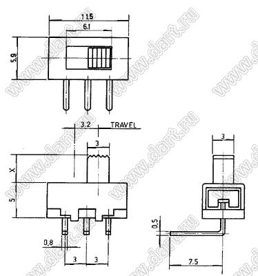 Каталог > Электронные компоненты, радиодетали > Переключатели, кнопки > Переключатели движковые (SLIDE) > Переключатели движковые (SLIDE) угловые > SS-12F21-G7