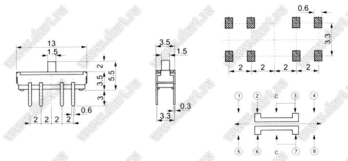 Каталог > Электронные компоненты, радиодетали > Переключатели, кнопки > Переключатели движковые (SLIDE) > Миниатюрные > MSS-23D19 (IS-1336)
