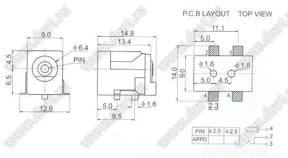 Каталог > Электронные компоненты, радиодетали > Разъёмы (соединители, переходники) > Разъемы вторичного (низковольтного) DC питания > DC гнезда (вторичного низковольтного питания) > DC-050-2.0