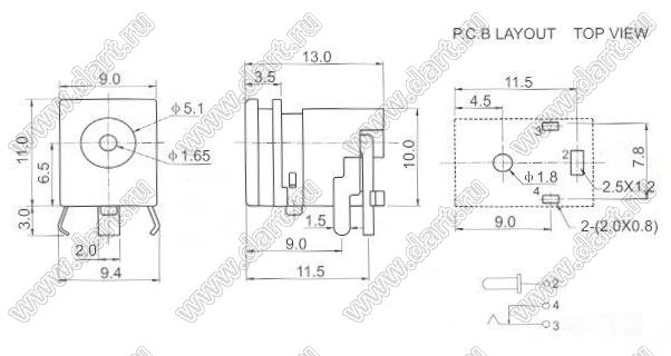 Каталог > Электронные компоненты, радиодетали > Разъёмы (соединители, переходники) > Разъемы вторичного (низковольтного) DC питания > DC гнезда (вторичного низковольтного питания) > DC-039 (DJK-19G)