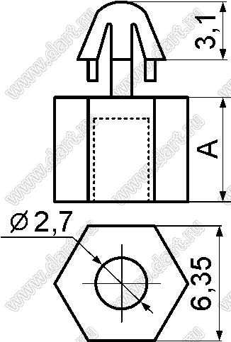 Каталог > Фурнитура для электронных устройств > Фиксаторы плат, стойки межплатные > Фиксаторы под круглое отверстие > Фиксаторы с защелкой в плату > MAE43-xx серия > MAE43-11