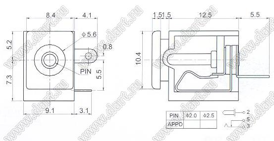 Каталог > Электронные компоненты, радиодетали > Разъёмы (соединители, переходники) > Разъемы вторичного (низковольтного) DC питания > DC гнезда (вторичного низковольтного питания) > DC-009-2.0
