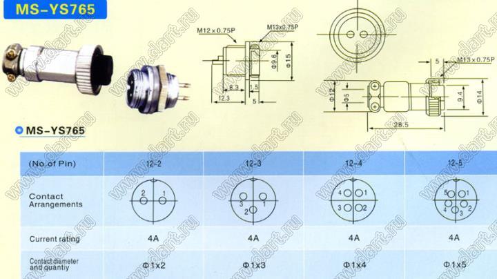 Каталог > Электронные компоненты, радиодетали > Разъёмы (соединители, переходники) > Разъемы круглые промышленные (соединители низкочастотные цилиндрические) > RS765 серия > RS765-6PW/YC