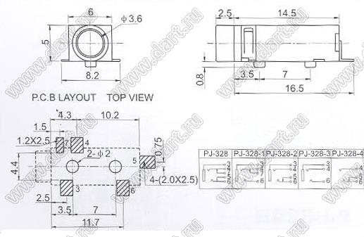 Каталог > Электронные компоненты, радиодетали > Разъёмы (соединители, переходники) > Разъемы аудио-видео > Аудио разъемы 3,5 мм > PJ-328