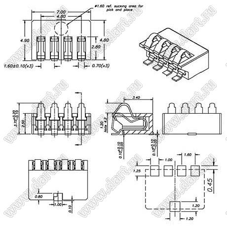 Каталог > Электронные компоненты, радиодетали > Разъёмы (соединители, переходники) > Контакты для батарей мобильных телефонов > BAT-2.5 1.6 pitch 4 pin