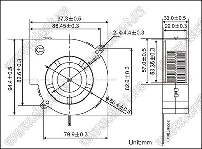 Каталог > Корпусные и установочные изделия > Устройства охлаждения > Вентиляторы > Вентиляторы радиальные (центробежные) постоянного тока (DC) > DF9733 серия (97,3x94,4x33мм) > DF9733S24M