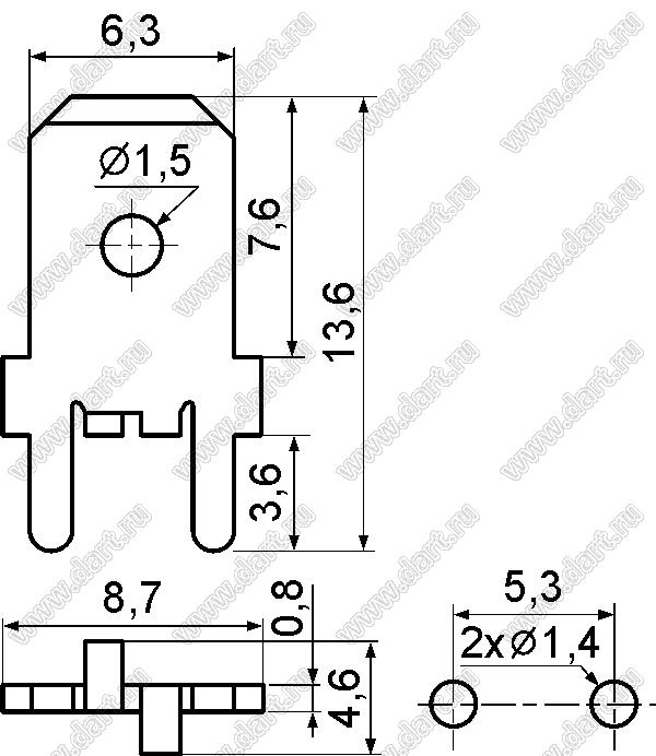 Каталог > Фурнитура для электронных устройств > Терминалы для печатных плат > Терминалы ножевые для пайки в печатную плату > PC-250C
