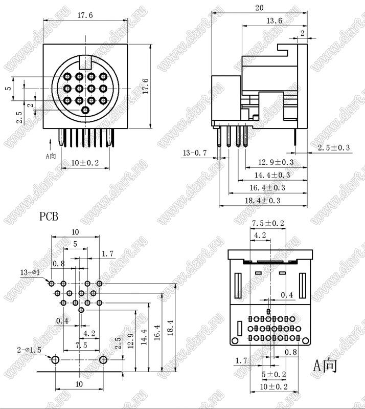 Каталог > Электронные компоненты, радиодетали > Разъёмы (соединители, переходники) > Разъемы DIN круглые > Розетки DIN на плату > DS-13-01