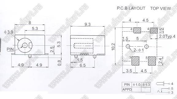 Каталог > Электронные компоненты, радиодетали > Разъёмы (соединители, переходники) > Разъемы вторичного (низковольтного) DC питания > DC гнезда (вторичного низковольтного питания) > DC-033-1.3
