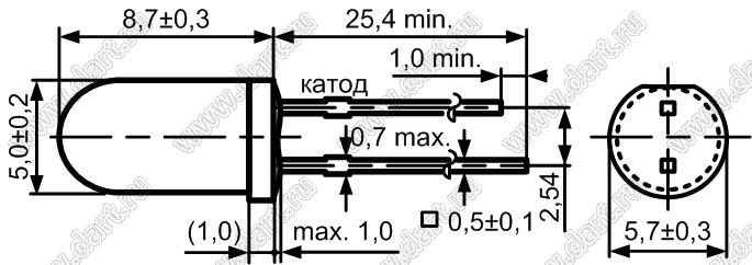 Каталог > Оптоэлектроника и индикация > Светодиоды и изделия на светодиодах > Светодиоды выводные > Светодиоды круглые 5,0x8,7 мм > 5034Y1D-ESA-C