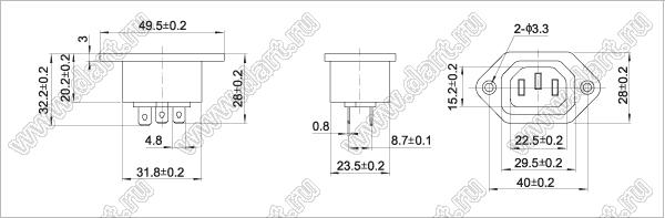 Каталог > Электронные компоненты, радиодетали > Разъёмы (соединители, переходники) > Разъемы AC (разъемы сетевого питания) > Трехполюсные разъемы сетевого питания > IEC 60320 C13/C14 > SP-864C2 (R-302, 2608) 15A
