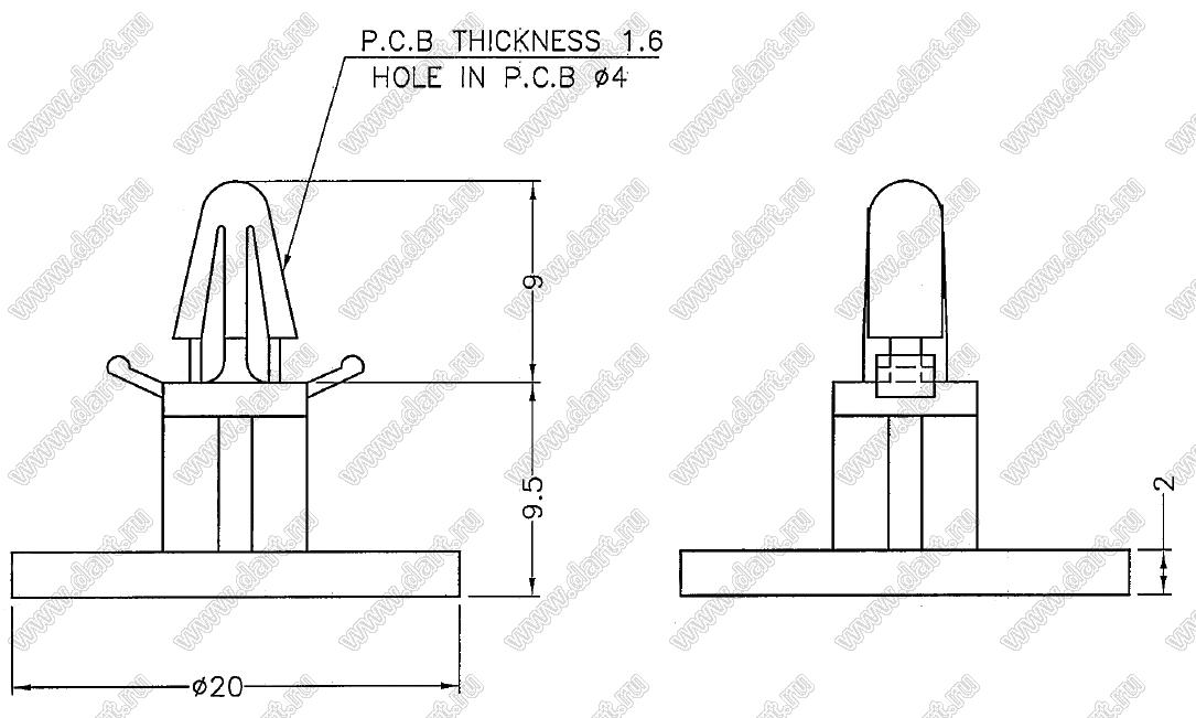 Каталог > Фурнитура для электронных устройств > Фиксаторы плат, стойки межплатные > Фиксаторы под круглое отверстие > Фиксаторы с защелкой в плату > MBS серия > MBS-9.5LV0
