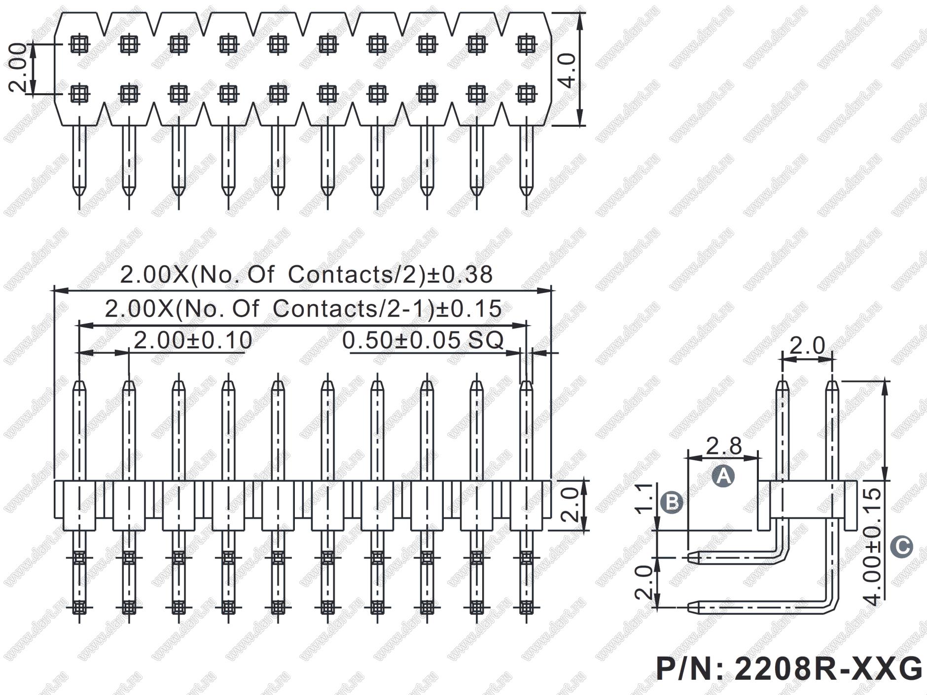 Каталог > Электронные компоненты, радиодетали > Разъёмы (соединители, переходники) > Разъемы плата-плата (межплатные) > шаг 2,00x2,00 мм (разъемы межплатные штыревые и гнезда для них) > двухрядные > 2208R-XXG-XXXXXX (PLD2-xxR) серия > 2208R-30G (PLD2-30R)