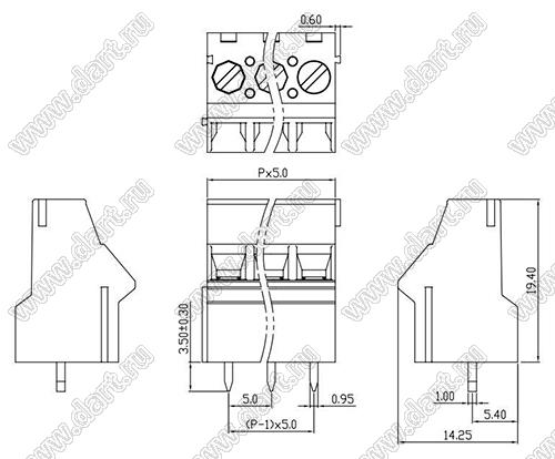 Каталог > Электронные компоненты, радиодетали > Клеммники (колодки клеммные) > Клеммники винтовые для монтажа в отверстия печатных плат > Винтовые клеммники (шаг 5,0 мм) > KF129S-5.0 серия > KF129S-5.0-02P-14