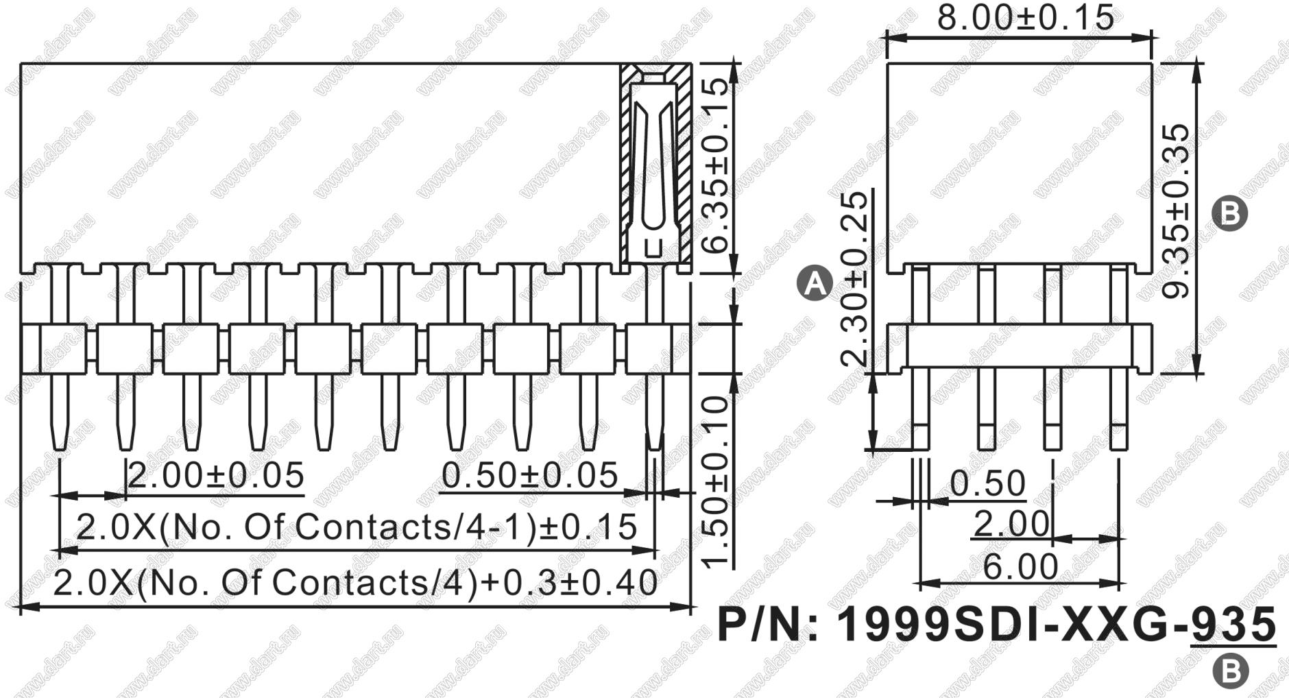 Каталог > Электронные компоненты, радиодетали > Разъёмы (соединители, переходники) > Разъемы плата-плата (межплатные) > шаг 2,00x2,00 мм (разъемы межплатные штыревые и гнезда для них) > четырехрядные > 1999SDI-XXXG-935 серия > 1999SDI-068G-935