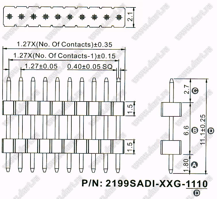 Каталог > Электронные компоненты, радиодетали > Разъёмы (соединители, переходники) > Разъемы плата-плата (межплатные) > шаг 1,27x1,27 мм (разъемы межплатные штыревые и гнезда для них) > однорядные > 2199SADI-XXG (PLLH1.27) серия > 2199SADI-50G-1110 (PLLH1.27-50)