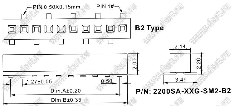 Каталог > Электронные компоненты, радиодетали > Разъёмы (соединители, переходники) > Разъемы плата-плата (межплатные) > шаг 1,27x1,27 мм (разъемы межплатные штыревые и гнезда для них) > однорядные > 2200SA-XXG-SM2-B2 серия > 2200SA-30G-SM2-B2