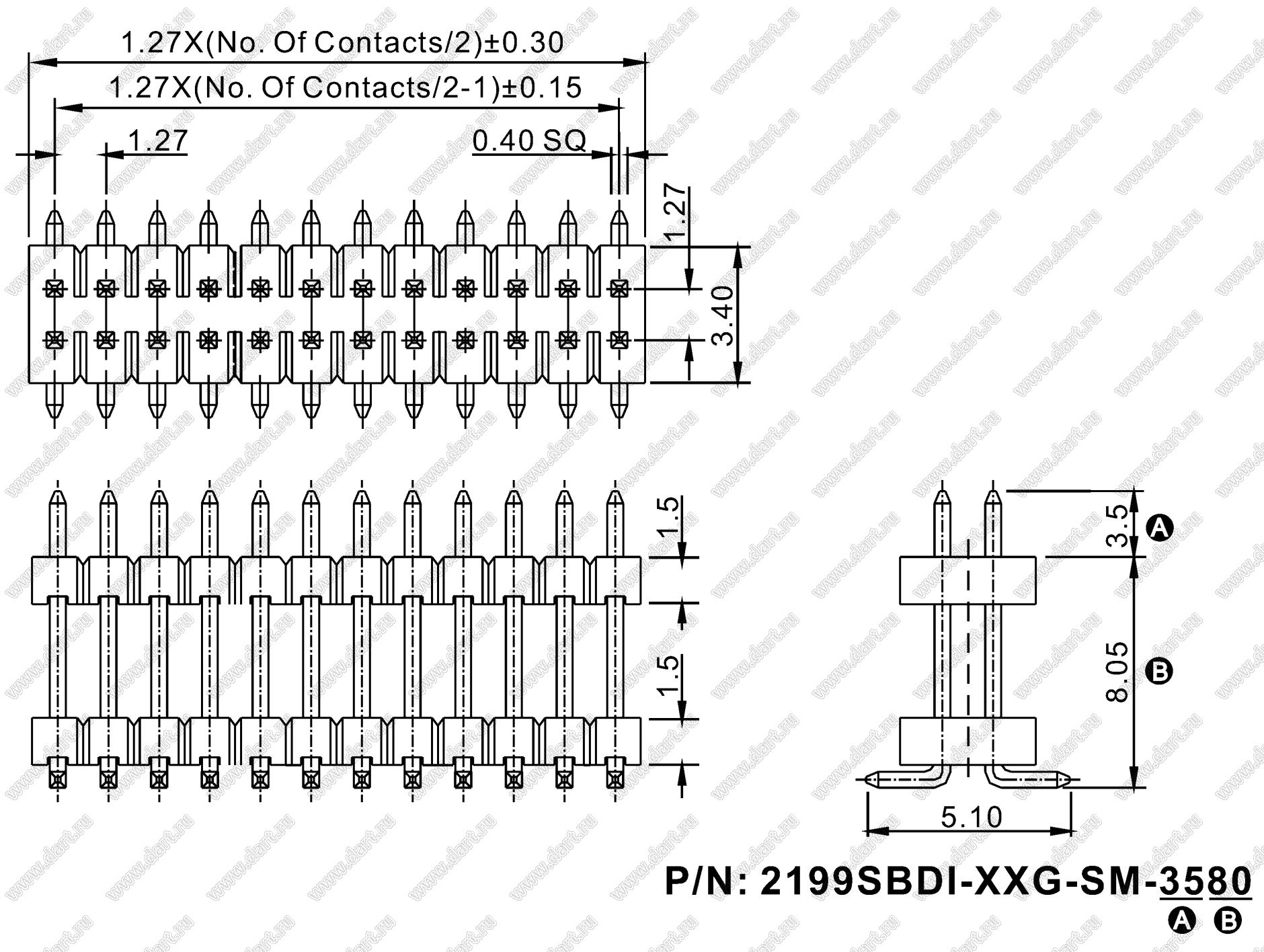 Каталог > Электронные компоненты, радиодетали > Разъёмы (соединители, переходники) > Разъемы плата-плата (межплатные) > шаг 1,27x1,27 мм (разъемы межплатные штыревые и гнезда для них) > двухрядные > 2199SBDI-XXXG-SM (PLLHD1.27S) серия > 2199SBDI-056G-SM-3580