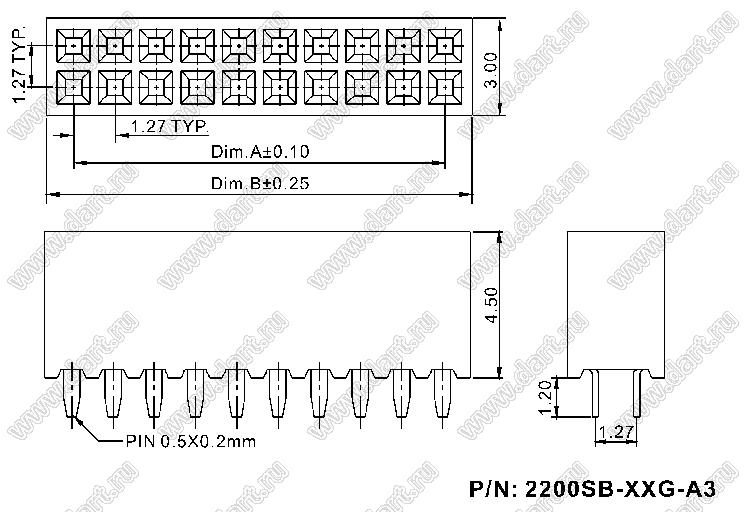Каталог > Электронные компоненты, радиодетали > Разъёмы (соединители, переходники) > Разъемы плата-плата (межплатные) > шаг 1,27x1,27 мм (разъемы межплатные штыревые и гнезда для них) > двухрядные > 2200SB-XXXG-A3 серия > 2200SB-070G-A3