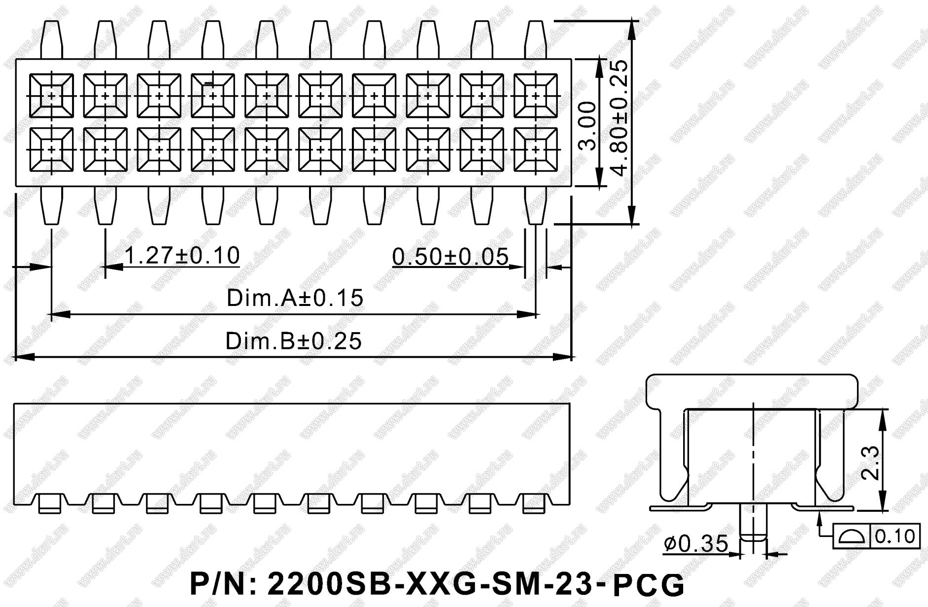 Каталог > Электронные компоненты, радиодетали > Разъёмы (соединители, переходники) > Разъемы плата-плата (межплатные) > шаг 1,27x1,27 мм (разъемы межплатные штыревые и гнезда для них) > двухрядные > 2200SB-XXXG-SM-23-PCG серия > 2200SB-012G-SM-23-PCG