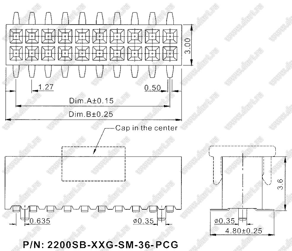 Каталог > Электронные компоненты, радиодетали > Разъёмы (соединители, переходники) > Разъемы плата-плата (межплатные) > шаг 1,27x1,27 мм (разъемы межплатные штыревые и гнезда для них) > двухрядные > 2200SB-XXXG-SM-36-PCG серия > 2200SB-004G-SM-36-PCG