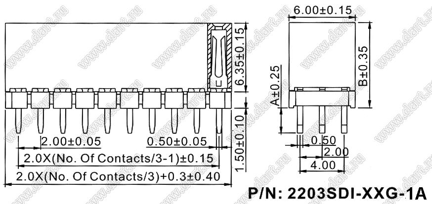 Каталог > Электронные компоненты, радиодетали > Разъёмы (соединители, переходники) > Разъемы плата-плата (межплатные) > шаг 2,00x2,00 мм (разъемы межплатные штыревые и гнезда для них) > трехрядные > 2203SDI-XXXG-1A серия > 2203SDI-060G-1A