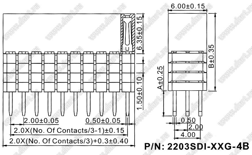 Каталог > Электронные компоненты, радиодетали > Разъёмы (соединители, переходники) > Разъемы плата-плата (межплатные) > шаг 2,00x2,00 мм (разъемы межплатные штыревые и гнезда для них) > трехрядные > 2203SDI-XXXG-4B серия > 2203SDI-120G-4B
