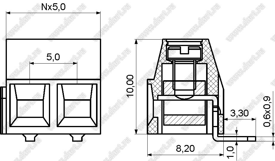 Каталог > Электронные компоненты, радиодетали > Клеммники (колодки клеммные) > Клеммники винтовые для монтажа в отверстия печатных плат > Винтовые клеммники (шаг 5,0 мм) > KF127R-5.0 (DG127R-5.0) серия > KF127R-5.0-03P-14