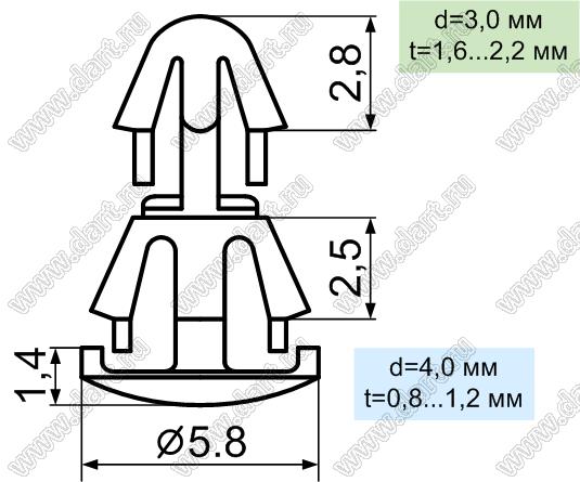 Каталог > Фурнитура для электронных устройств > Фиксаторы плат, стойки межплатные > Фиксаторы под круглое отверстие > Фиксаторы с двумя защелками > RCO серия > RCO-2.5L