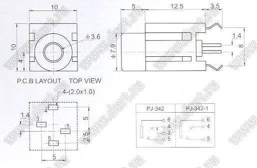 Каталог > Электронные компоненты, радиодетали > Разъёмы (соединители, переходники) > Разъемы аудио-видео > Аудио разъемы 3,5 мм > PJ-342-1
