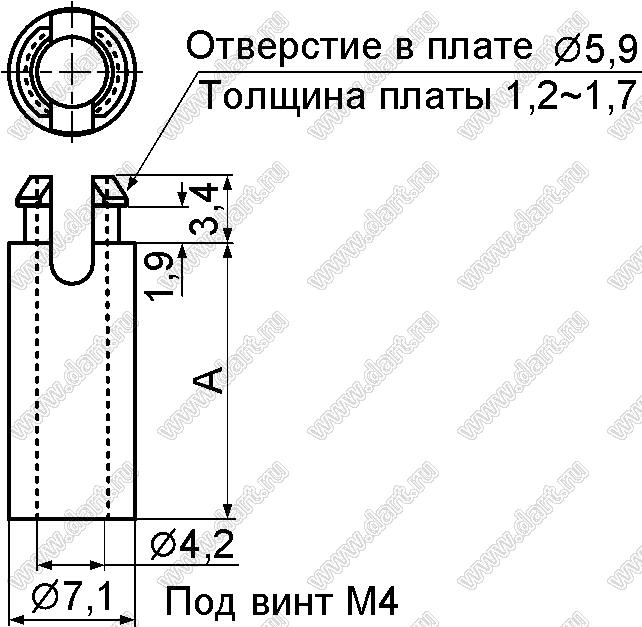 Каталог > Фурнитура для электронных устройств > Фиксаторы плат, стойки межплатные > Фиксаторы под круглое отверстие > Фиксаторы с защелкой в плату > SS4 серия > SS4-12S